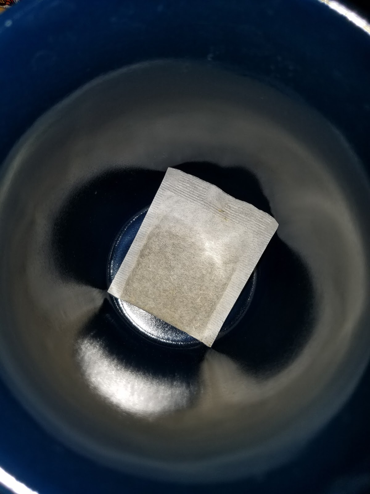 Oh right, back to the tea! While the water is warming, I got down my gigantic favorite mug ever. I've had this mug for probably 15 years now? Love it. And dropped my tea bag into the mug. All waiting on the water!